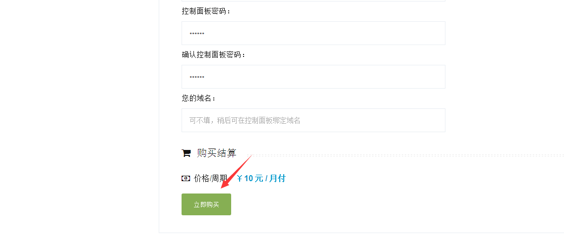 设置控制面板用户名和密码,然后点击“立即购买”