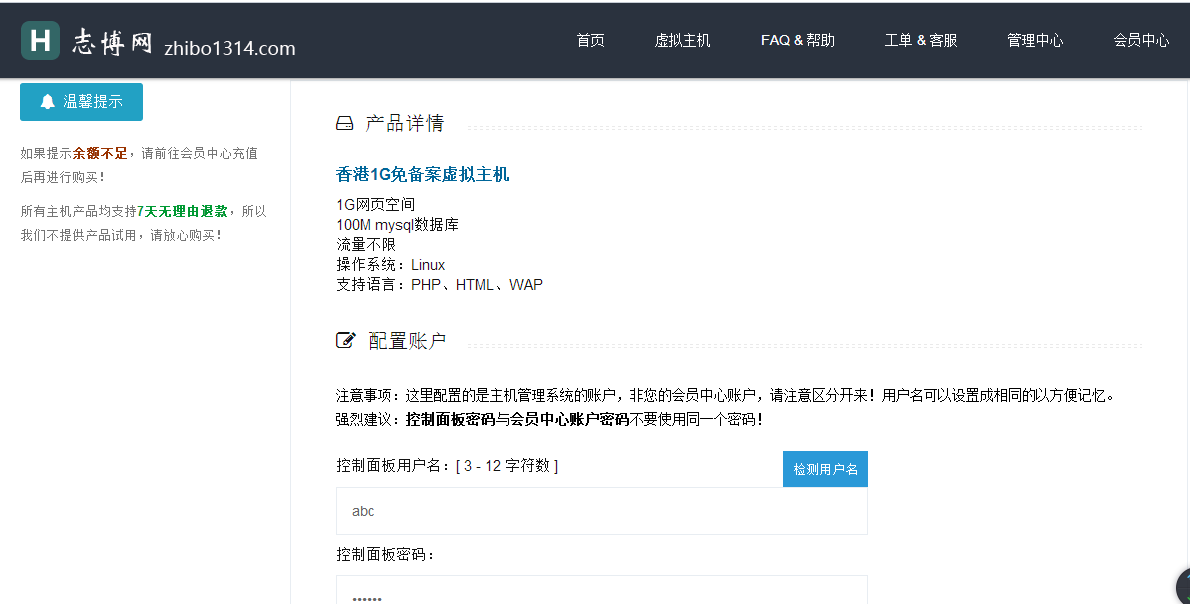 输入你要充值的金额,点击“立即充值”,充值好之后就可以去购买虚拟主机了。