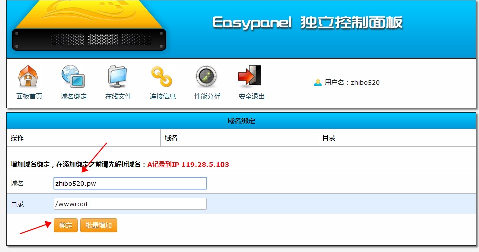 在空间绑定域名之前,先要把域名解析到空间,如果域名还没解析的话可以看一下这篇文章:域名如何解析到网站空间